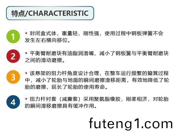 2、剛性(xing)懸(xuan)架的車(che)身底盤(pan)直(zhi)接作(zuo)用(yong)在(zai)車(che)輪(lun)之(zhi)間(jian)的(de)車軸(zhou) 上(shang),沒有彈(dan)簧(huang)作(zuo)爲緩衝(chong),遇到(dao)路(lu)麵(mian)不(bu)平(ping)的(de)情況(kuang)下(xia), 可(ke)完全(quan)依(yi)靠(kao)平衡(heng)樑的(de)擺(bai)動(dong)保持前后(hou)橋(qiao)浮(fu)動。