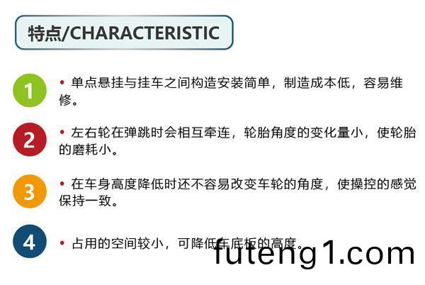 2、左(zuo)右輪(lun)在(zai)彈跳(tiao)時(shi)會相互牽(qian)連(lian),輪胎(tai)角(jiao)度(du)的變(bian)化(hua)量小(xiao),使輪(lun)胎(tai)的(de)磨耗(hao)小(xiao)。