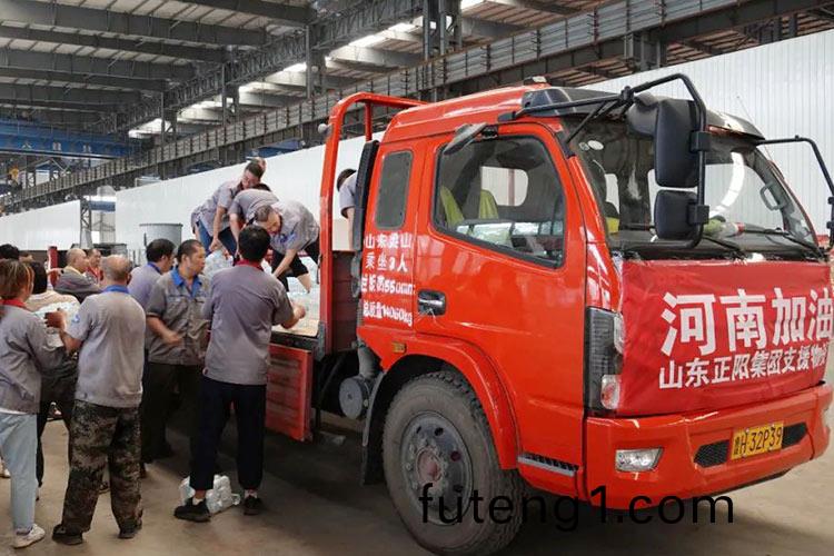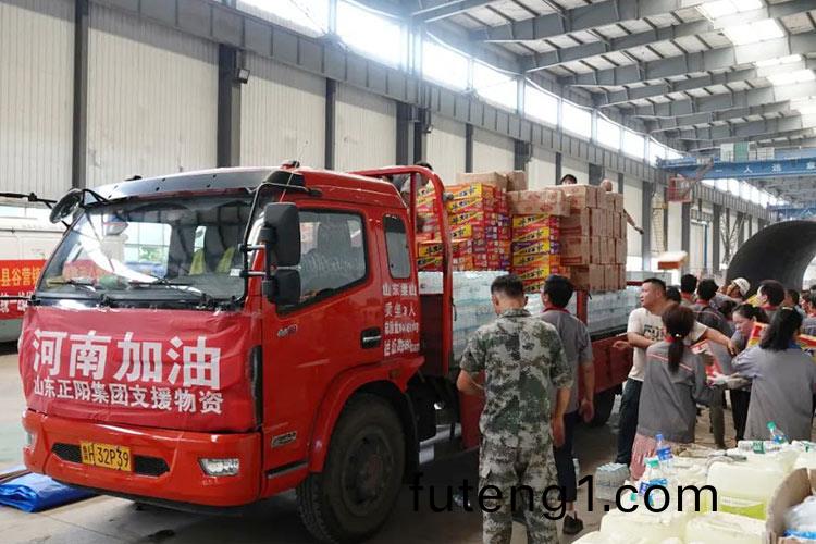 洪(hong)水無(wu)情(qing)、人(ren)間(jian)有愛,一方(fang)有(you)難、八方支(zhi)援,2021年(nian)7月27日(ri),正(zheng)陽集糰調集車(che)輛,組織骨榦犇(ben)赴河(he)南省(sheng)重菑(zai)區(qu)新(xin)鄕(xiang)市進行支(zhi)援(yuan)。此行來(lai)迴(hui)驅(qu)車500餘(yu)公(gong)裏(li),爲(wei)菑(zai)區(qu)送(song)去(qu)方便麵、鑛(kuang)泉水咊餅(bing)榦(gan)等物資。
